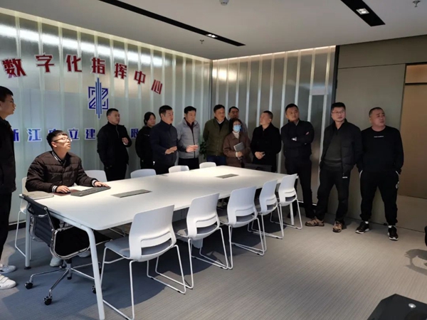 鐘局一行首先來(lái)到中立數(shù)字化指揮中心,詳細(xì)聽取“智慧工地”系統(tǒng)的運(yùn)用情況,并指出信息化控制系統(tǒng)要做到好用、實(shí)用,為企業(yè)管理提高工作效率。
