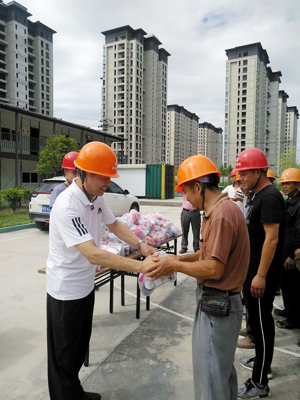 蔣金松副局長對項(xiàng)目人員和建筑工人們表示了親切的慰問和感謝,并要求項(xiàng)目管理人員堅(jiān)持“以人為本”、“安全第一”的理念,努力改善工作環(huán)境,調(diào)整施工時(shí)間,避開中午高溫時(shí)間段施工,合理安排夏季施工作業(yè)計(jì)劃,提高防范意識,確保建設(shè)工程施工安全與職工身體健康兩不誤。