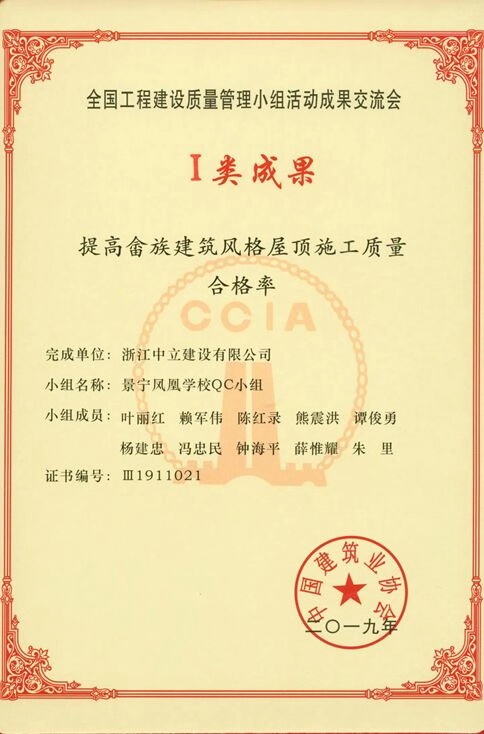 該成果在2019年全國工程建設質量管理小組活動成果交流會發(fā)布,并獲得全國工程建設質量管理小組活動成果Ⅰ類成果獎,是該批(第三批,共四批)發(fā)布的浙江省唯一的一個Ⅰ類成果,這也是麗水地區(qū)首個全國工程建設質量管理小組活動成果Ⅰ類成果。