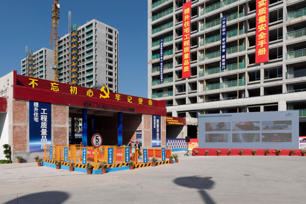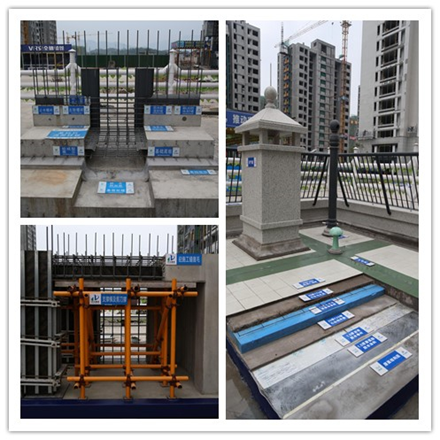 金周農(nóng)居新社區(qū)北地塊項目從二次結構、PC小構件、工藝流程樣板、地下室交付樣板、套內(nèi)交付樣板、架空層交付樣板、外墻、走道及文明施工、紅綠工地等各個方面展示了中立建設的特色和亮點。